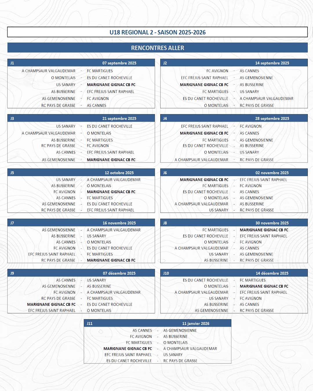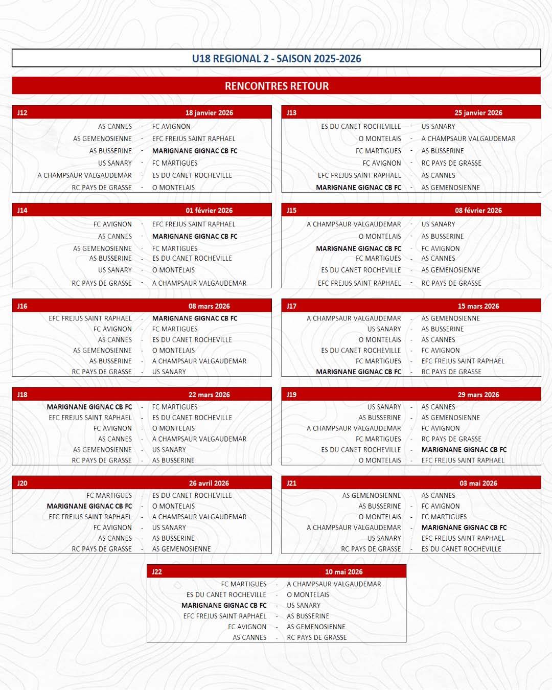 LE CALENDRIER DE NOS U18 R2 !
