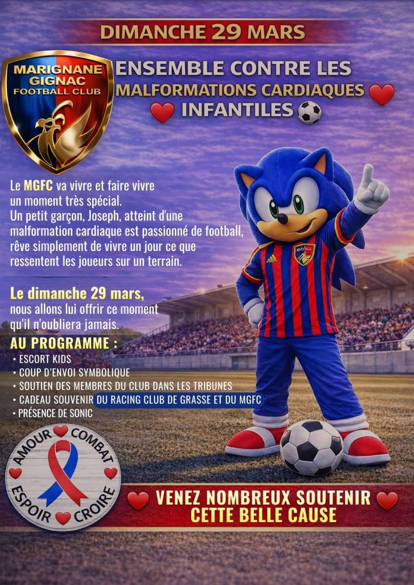Au-delà de l’enjeu sportif de cette rencontre de championnat, le Marignane Gignac FC souhaite mettre en lumière une cause importante : la sensibilisation aux malformations cardiaques infantiles.